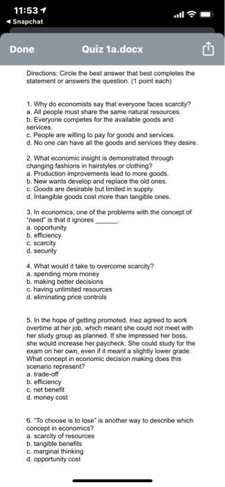 ECONOMICS WEEKLY QUIZES lOMoARcPSD7318149 Week 1 Marginal thinking is best demonstrated by. Question 21 Marginal thinking is best demonstrated by. Choosing to spend one more hour studying economics because you think the improvement in your score on the next quiz will be worth the sacrifice of time. 15-Marginal thinking is best demonstrated by. Deciding to never purchase a coat made with animal skins or furs C. The decisions of economic actors are bit by bit decisions not allornothing ones. Acquiring the information relevant to a choice before making that choice D. Marginal thinking is best demonstrated by. Explanation of marginal analysis.