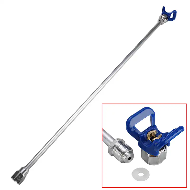 Graco spray gun extension. COLIBROX Airless Paint Sprayer Spray Gun Tip Extension Pole Rod for Graco Titan Wagner 50 cm 29 out of 5 stars 26. With a pole gun or the right tip extension length you can complete the job faster with less set-up time. Extend your reach and eliminate ladder hassles to safely spray hard-to-reach areas like high walls vaulted ceilings decks railings and soffits with Gracos full line of extended reach accessories.