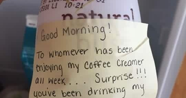 January 12 2021 at 414. When my wife said I forgot to get her coffee creamer at the store. Images videos related to Creamer Yall look what I just did - Yes thats coffee yes thats creamer yes Ill be returning to black coffee because I prefer it but YES IM GLAD TO HAVE THE OPTION. Visit our Website Like us on Several different recipes from chocolate cappuccino strudel caramel vanilla chocolate raspberry irish cream coconut peppermint mocha and cinnamon vanilla. Mar 03. Free coffee Friday are you kidding meme lol. The communal office fridge is a wild wild place.