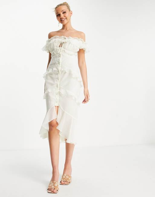 Shop over 320 top cream ruffle dress and earn Cash Back all in one place. Amounts shown in italicised text are for items listed in currency other than Euros and are approximate conversions to Euros based upon Bloombergs conversion rates. Rock a ruffle formal dress for your next special event or throw on a short ruffle dress for a weekend night out.